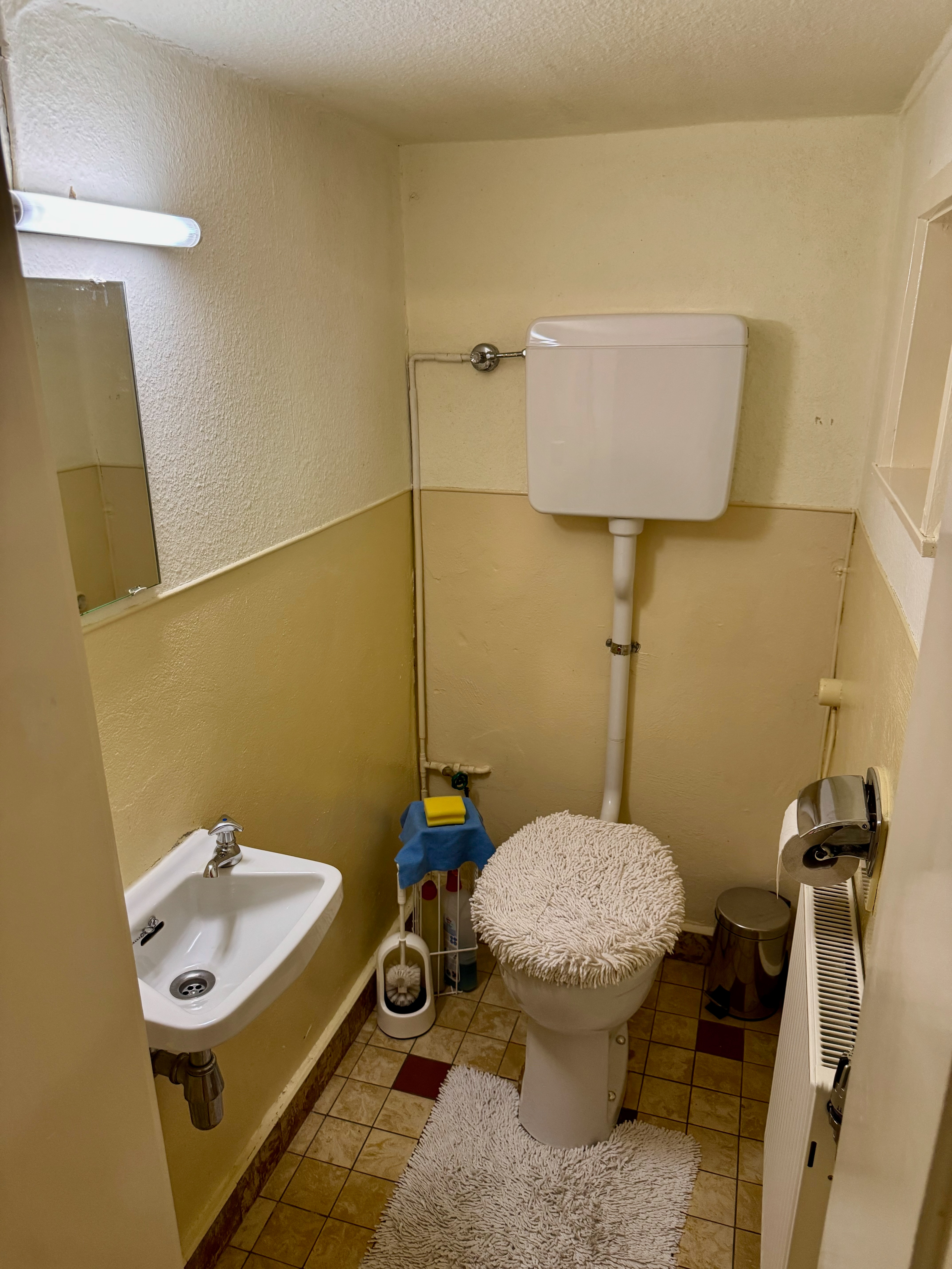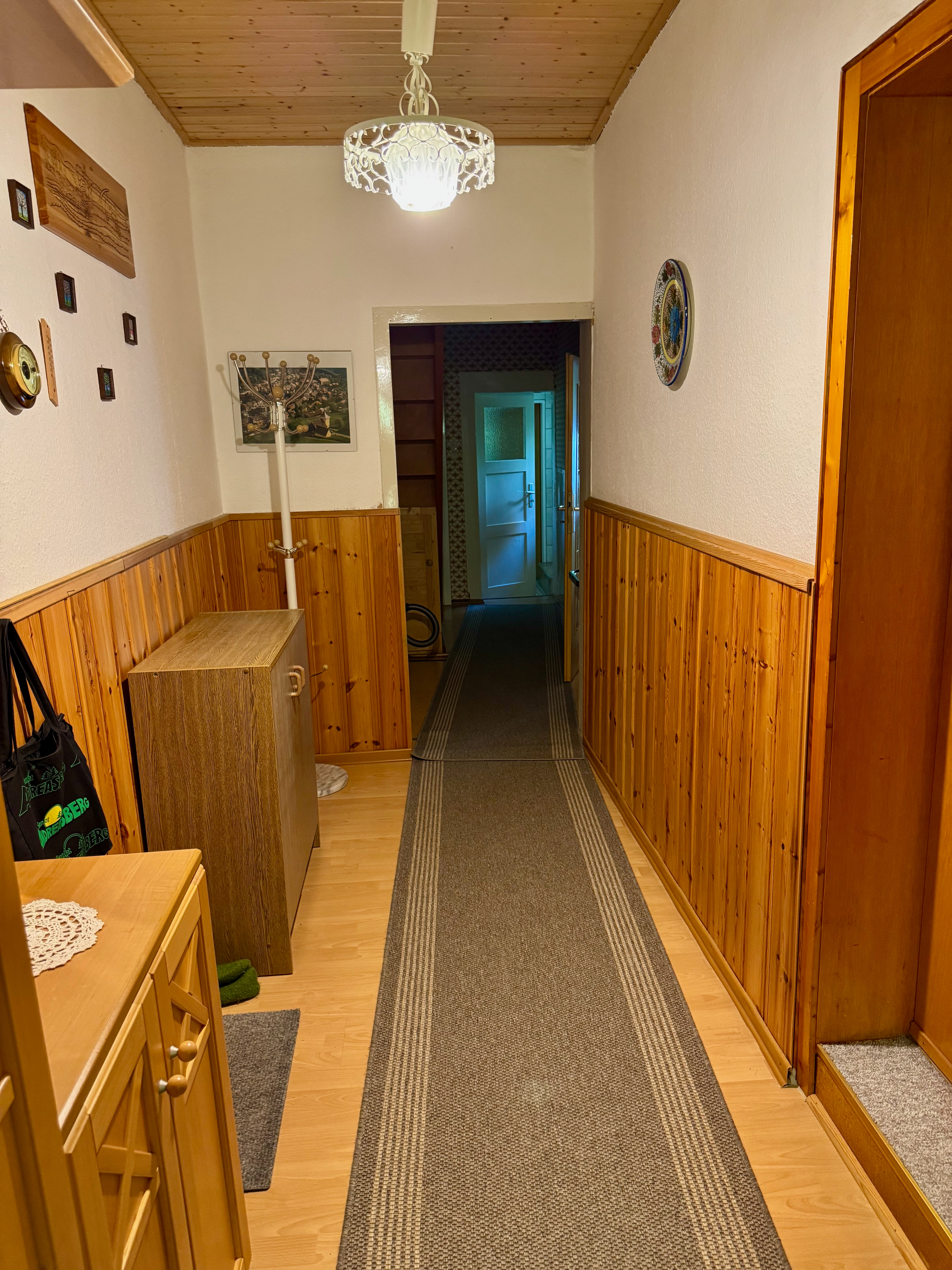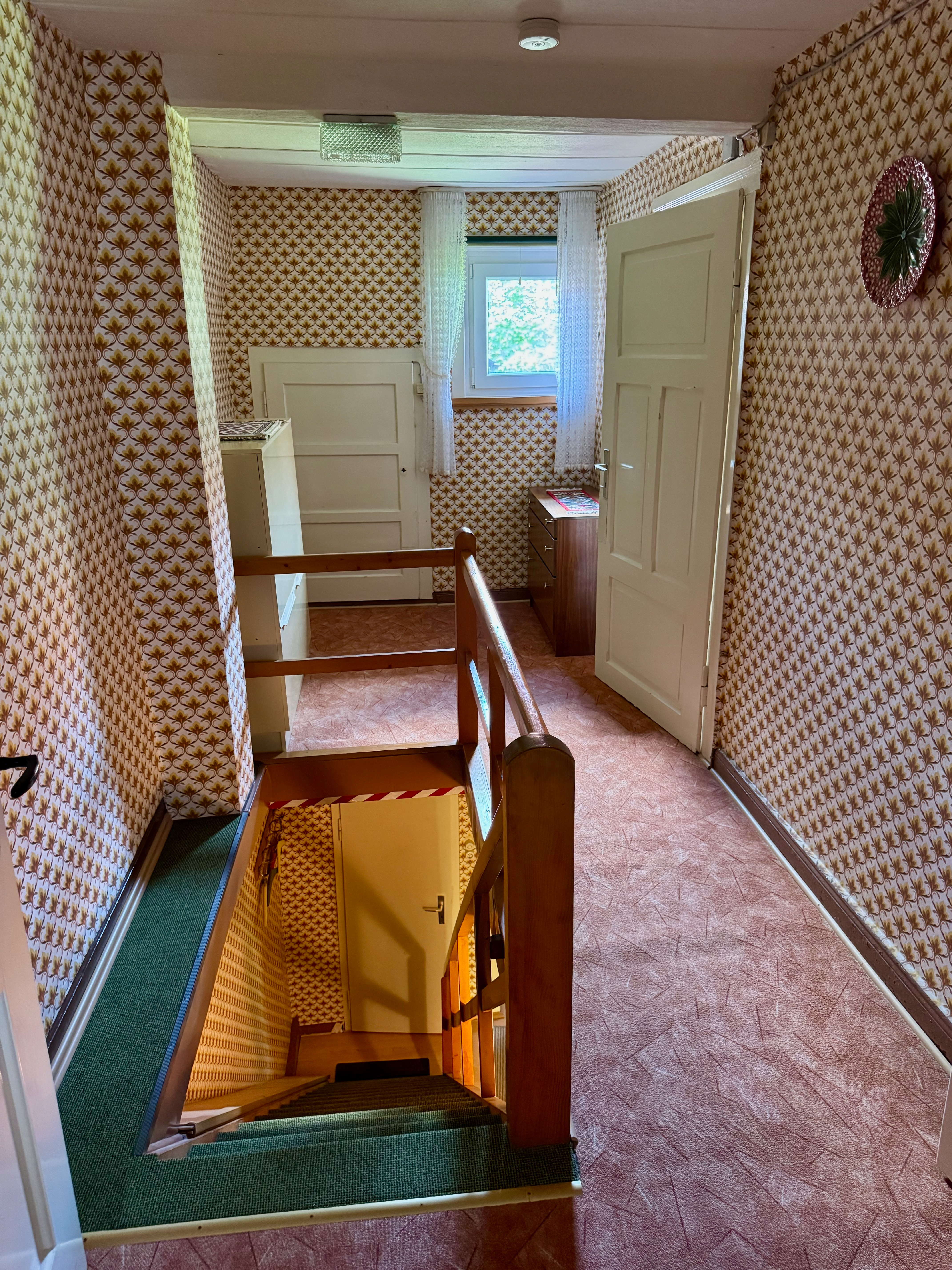 Im Erdgeschoss befinden sich die große Küche mit Einbauküche, der Eingangsbereich / Flur, ein Badezimmer (mit Dusche / Waschmaschinenanschluss), das WC, und ein großzügiges Wohnzimmer. Im Dachgeschoss befinden sich aktuell drei Schlafräume und eine Abseite (zum Stauen). Vom DG kommen Sie auf den Spitzboden, der aber nicht ausgebaut ist und als kleine Lagerfläche genutzt werden kann.